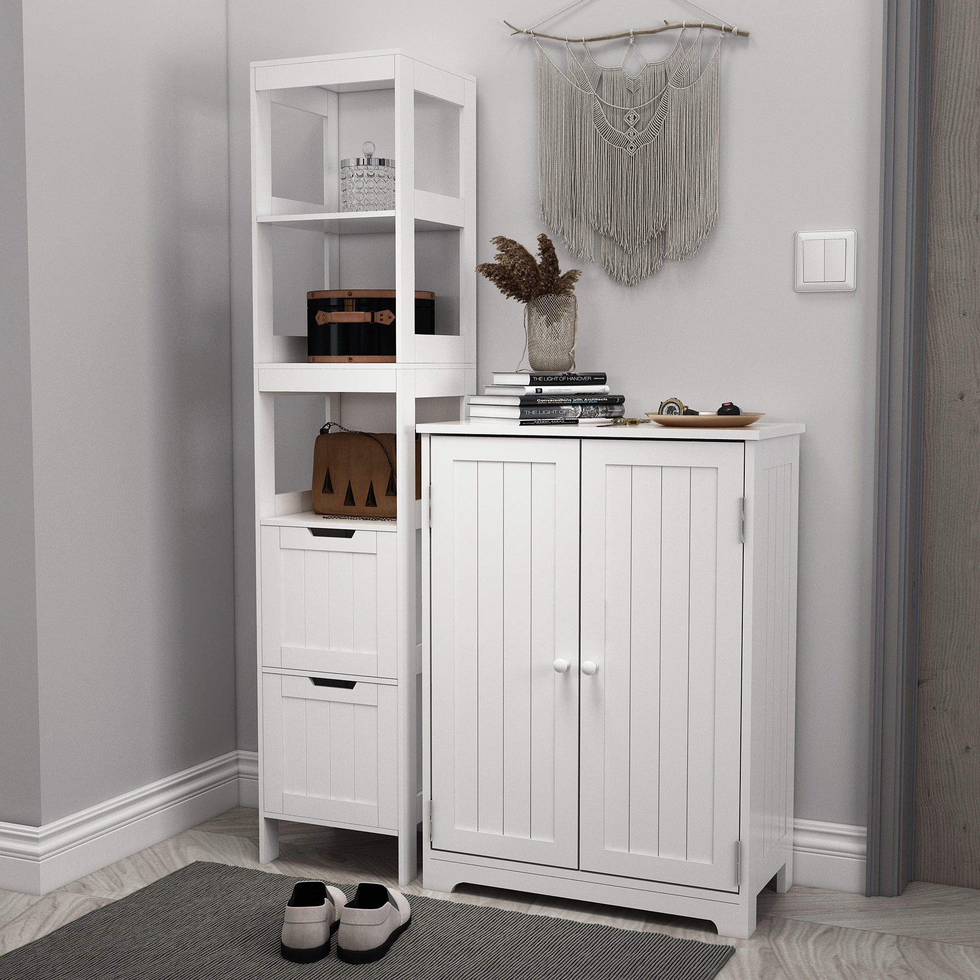 • [ Space-saving ] - The bathroom cabinet with a slim and compact design can be used to perfectly store necessary items, such as towels, toilet paper, etc. The cabinet adopts a heightened design, which can expand more storage space and is an ideal choice for small spaces.