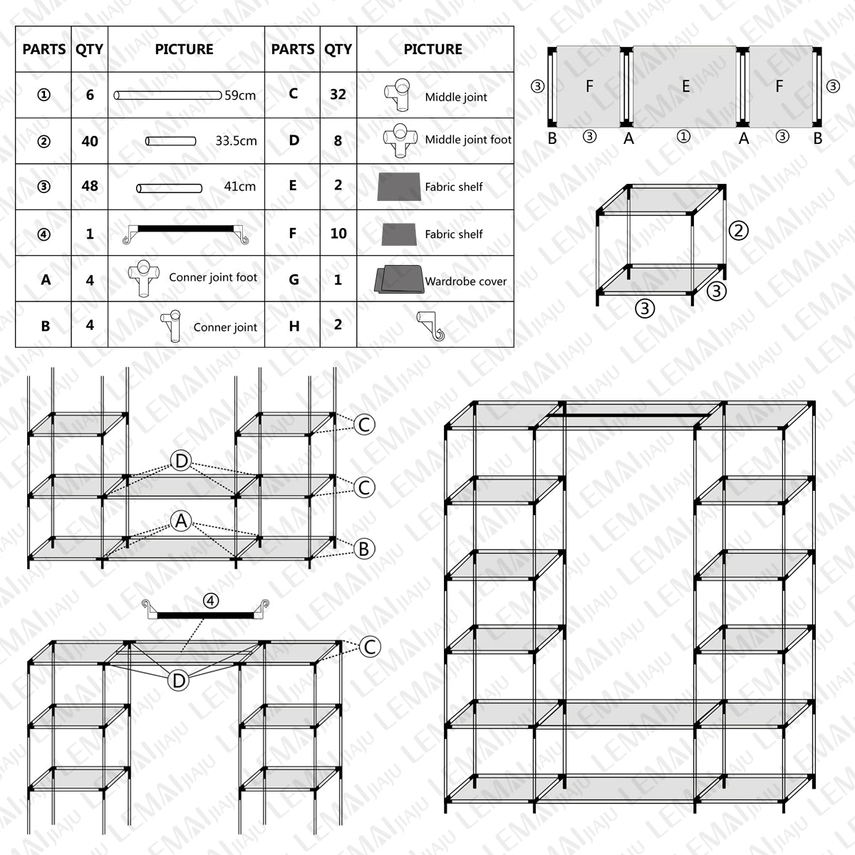 - Simple Home Furniture: The non-woven wardrobe could be assembled by simply iron pipes and plastic connectors, no need for any other tools. Two forms of furniture shelf and wardrobe change at a while, easily to move.