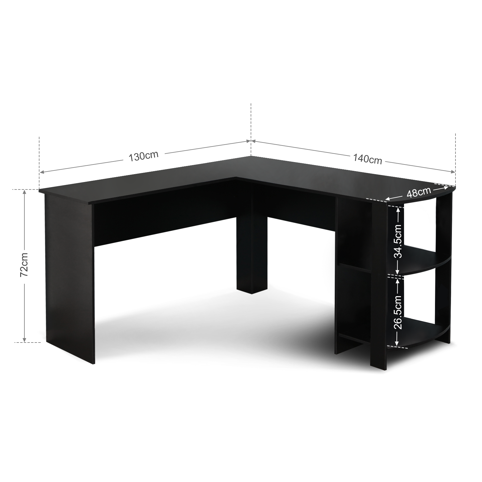 Black L-shaped Computer Corner Desk, with 2 Storage Shelves