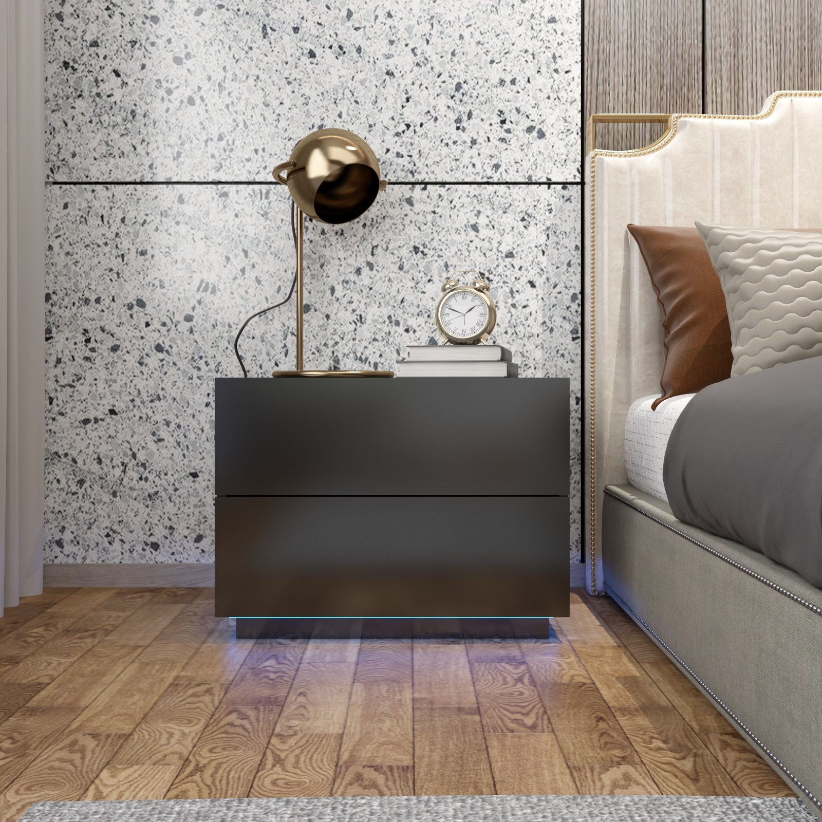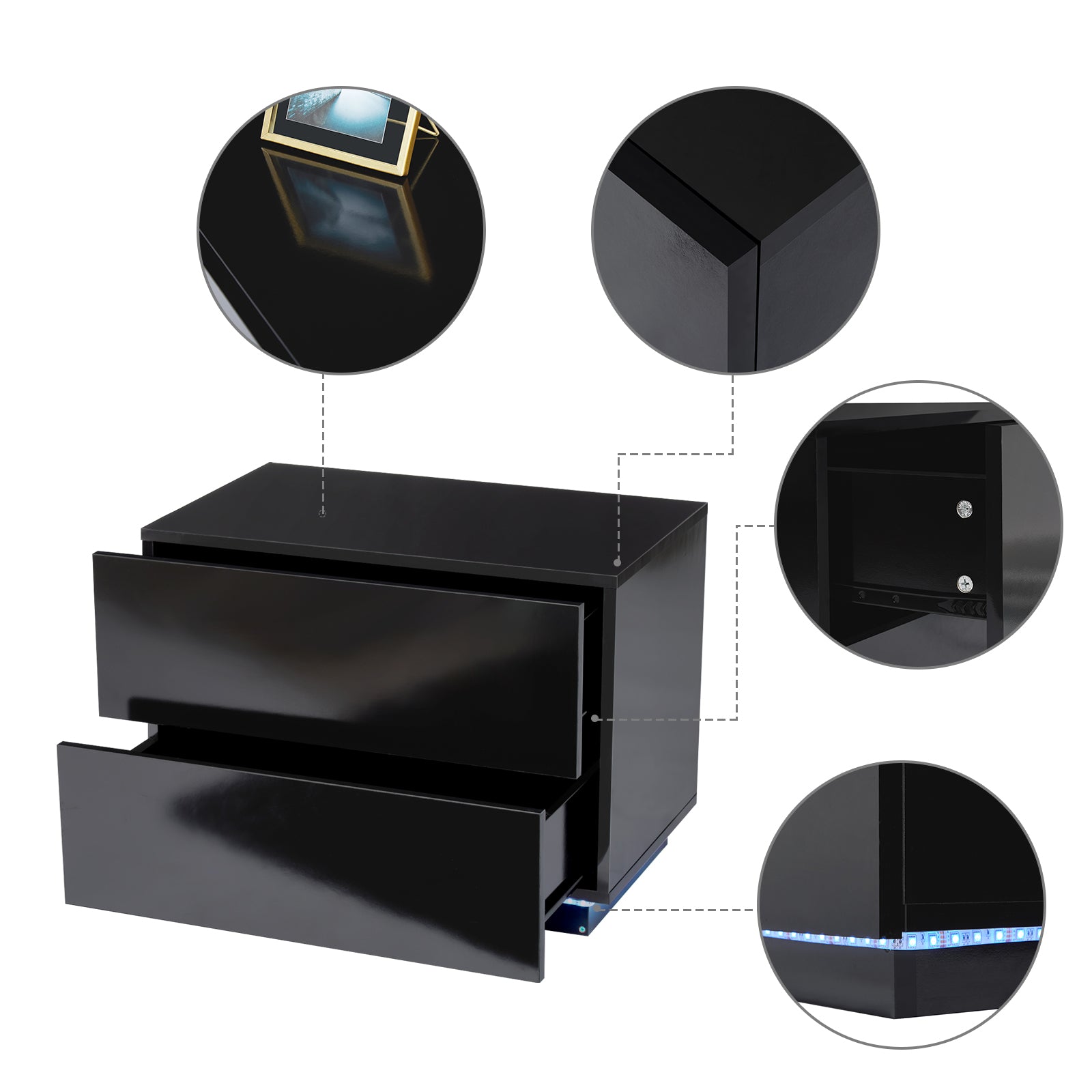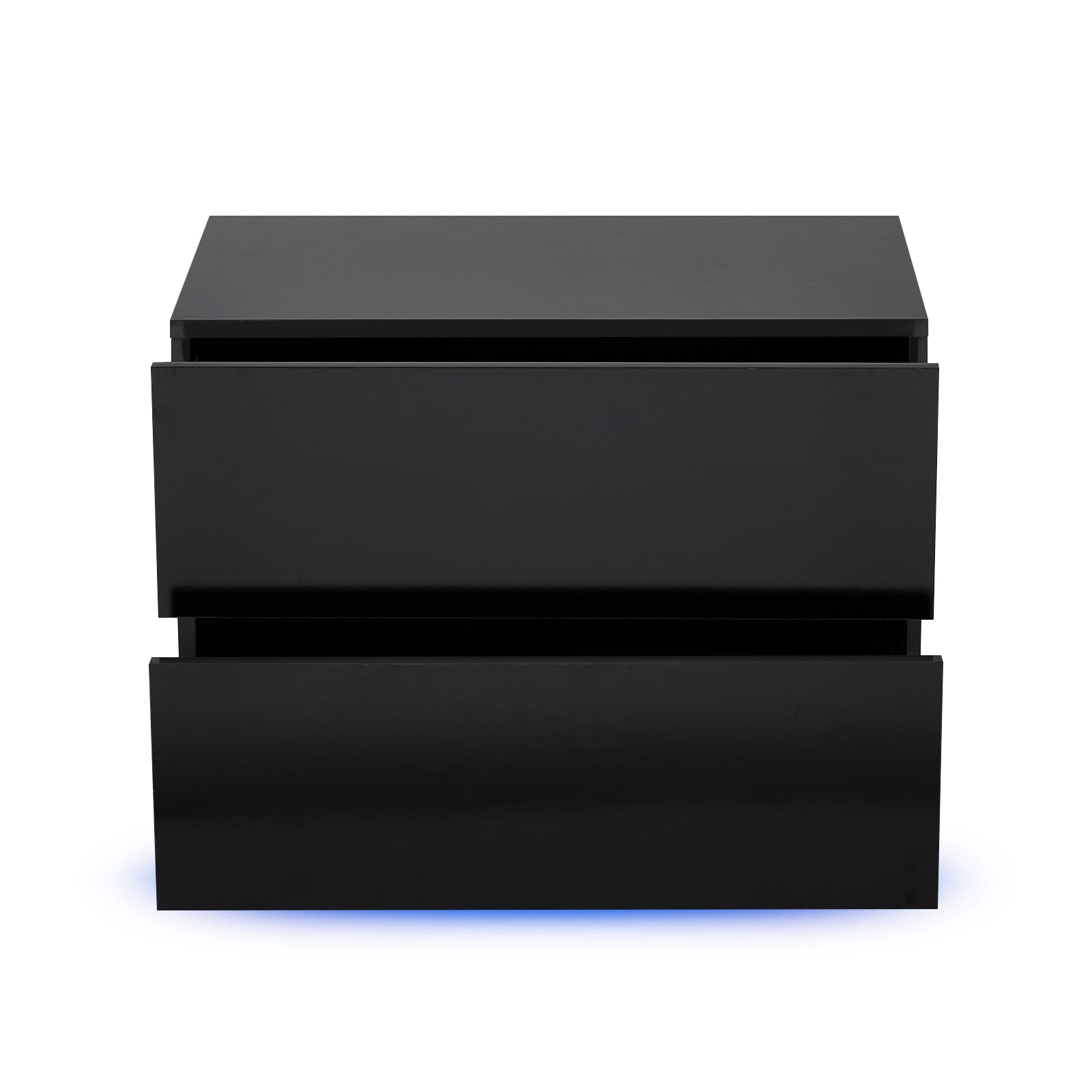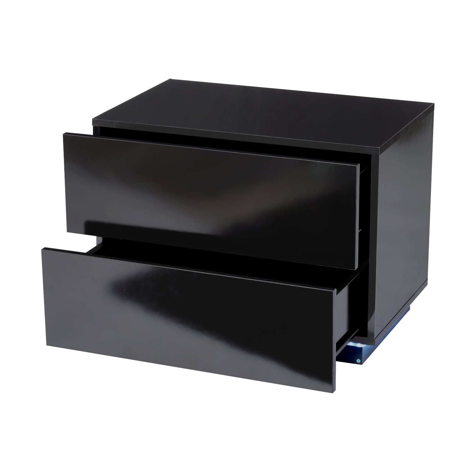 Bedside Table, LED Bedside Cabinet with 2 Drawers High Gloss with USB Light