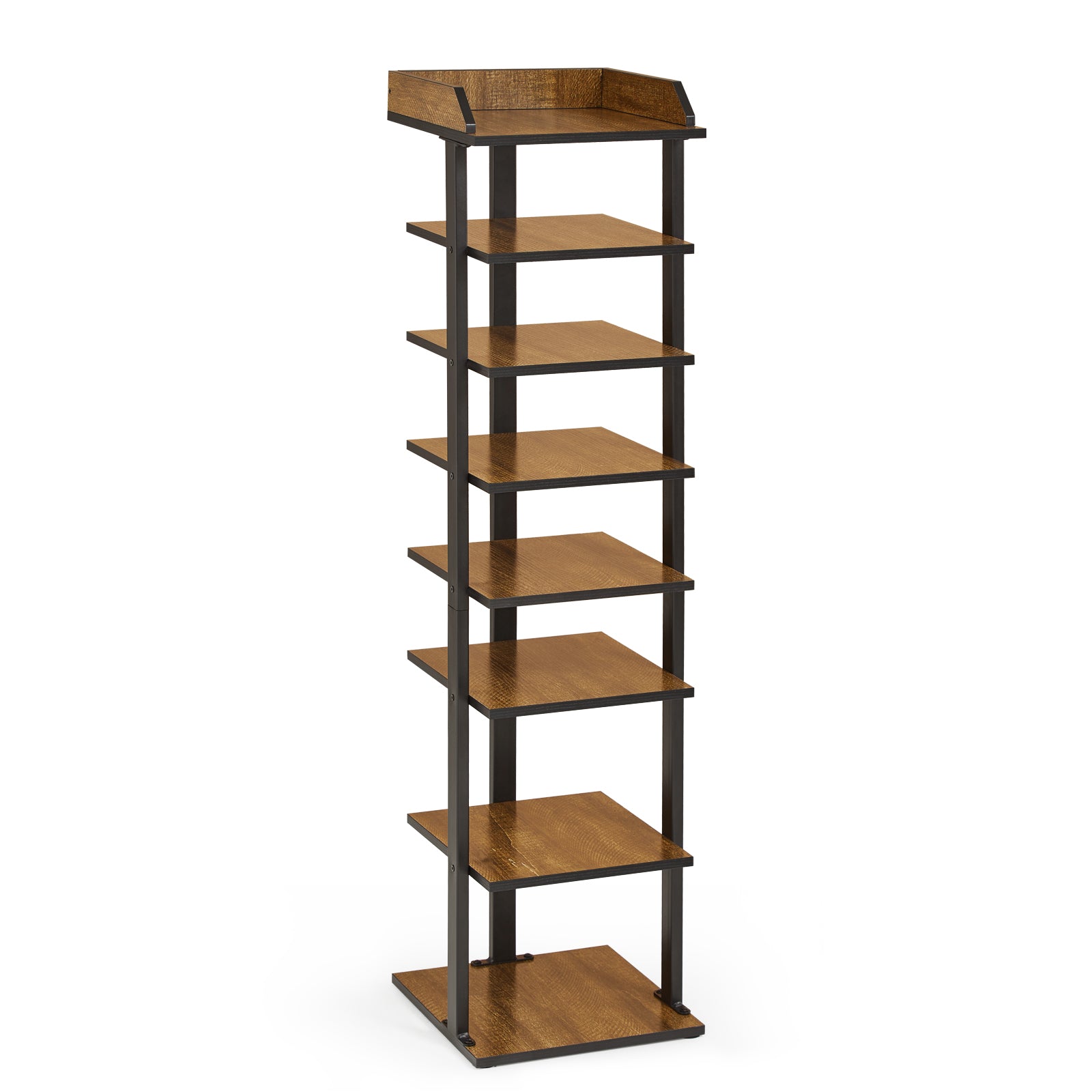 Mondeer Free Standing Shoe Rack, 8 Tier Narrow Tall Organizer Shelf for 8 Pairs in Small Space Entryway Hallway, Industrial Style Wooden Metal 11" D x 11" W x 44.5" H Inches (Rustic Brown)