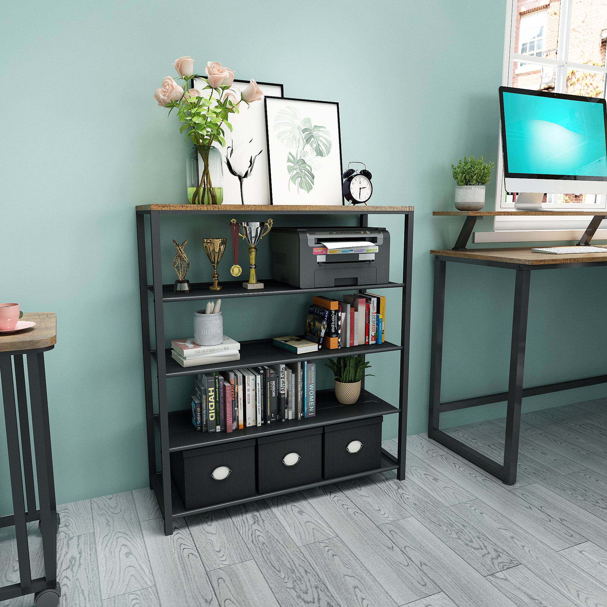 - Retro Design: With the classic vintage wood grain and black painted iron frame perfectly combined, its unique industrial design style add a fashionable atmosphere to your home.